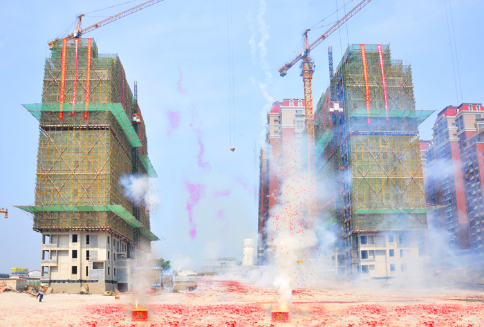 2016年6月18日,祥光普照,瑞氣盈蘊(yùn),萬(wàn)光·中央公園三期14、15、16、17、22、23號(hào)樓勝利封頂,萬(wàn)光城建董事長(zhǎng)姜振山出席封頂儀式。