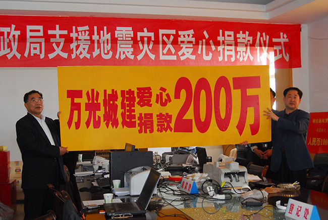 在回饋社會(huì)的路上,萬(wàn)光城建從未停止腳步。多年來(lái),萬(wàn)光城建身體力行投身各種社會(huì)公益活動(dòng),向煙臺(tái)市紅十字會(huì)、煙臺(tái)大學(xué)、煙臺(tái)向日葵殘疾兒童基地、煙大附小等單位及社會(huì)弱勢(shì)群體踴躍奉獻(xiàn)愛(ài)心……特別是在“5?12”汶川地震發(fā)生后,萬(wàn)光城建傾企業(yè)與員工所能,第一時(shí)間捐資205萬(wàn)元,創(chuàng)下連續(xù)5日全市企業(yè)捐款數(shù)額之佳,生動(dòng)詮釋了“責(zé)任企業(yè)、責(zé)任地產(chǎn)”的深刻內(nèi)涵。